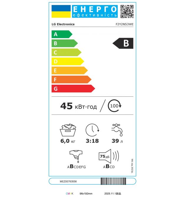 | Клас енергоспоживання | B |