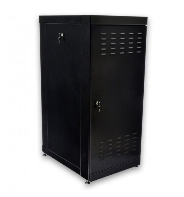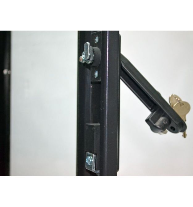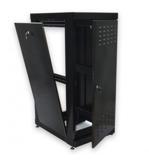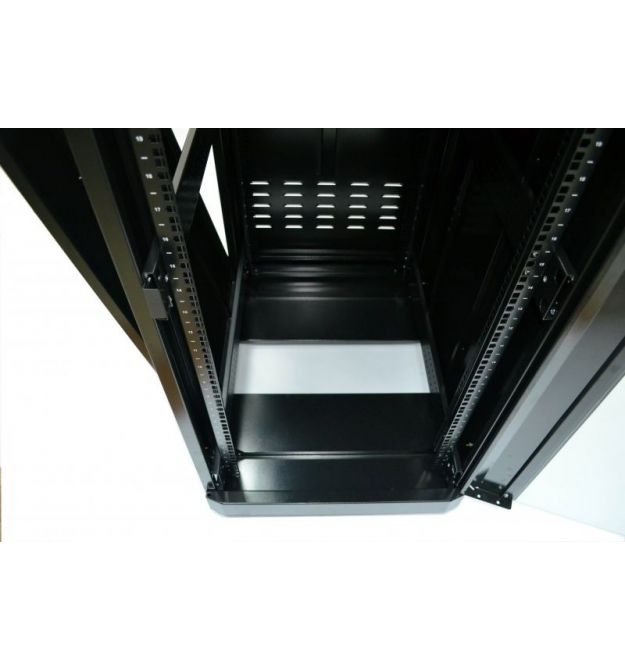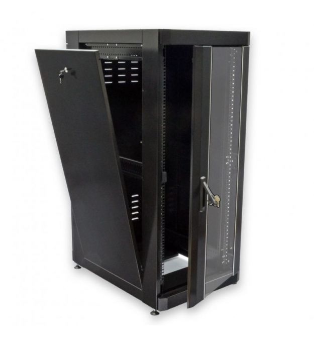 Серверна шафа 19” 24U серії MGSE із передніми дверима з каленого скла та задньою глухою дверцею, призначена для організації комутаційного вузла в офісних та серверних приміщеннях. Завдяки двом парам направляючих із лицьової та задньої сторони та допустимому навантаженню в 500 кг, у шафах є можливість розміщення обладнання на чотири точки кріплення, такого як сервери, блок безперебійного живлення підвищеної ємності та полиці глибиною понад 450 мм. Двостороння конструкція дозволяє як встановлювати обладнання з двох сторін, що збільшує висоту в юнітах у два рази, так і масштабувати мережу в майбутньому, наприклад, до настінної шафи на 18U можна встановити лише 18 патч-панелей, до підлогової шафи 18U встановлюється вже 36 панелей.