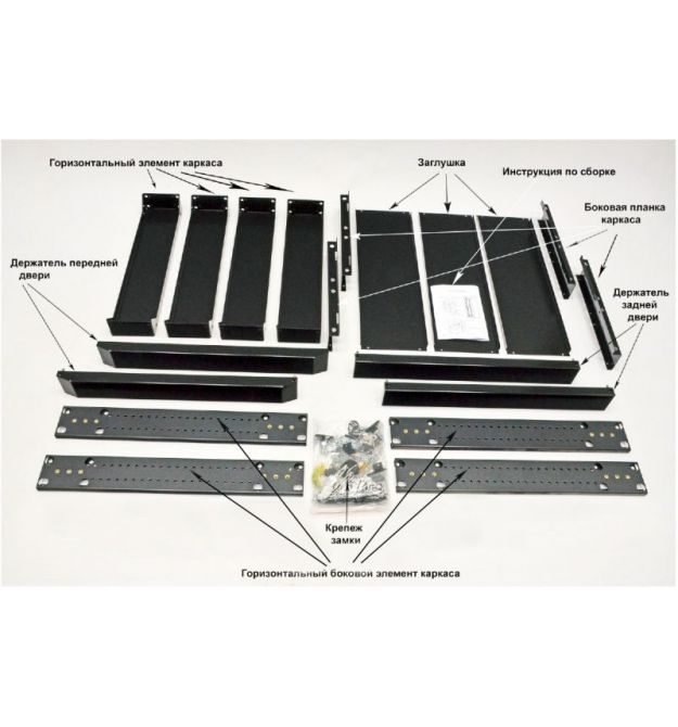 - 2 пари 19" направляючих (з маркуванням юнітів) для шаф глибиною 1055 мм + 1 додаткова пара