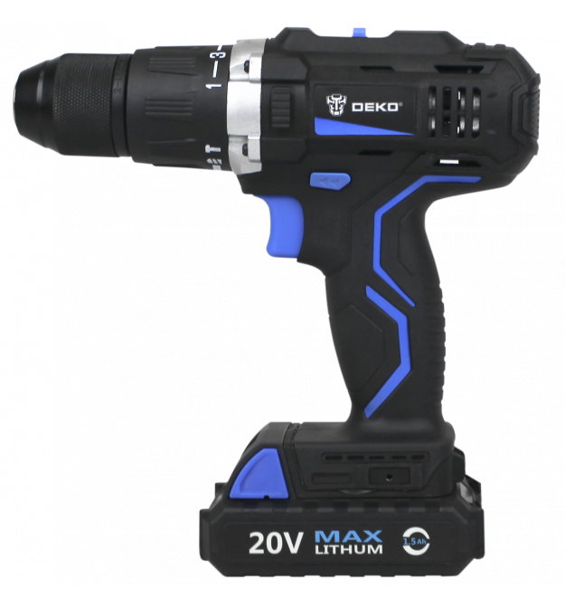 Акумуляторний дриль DEKO <-strong>20V MAX 1-2 дюйма з максимальним крутним моментом 58N.m. Існує функція удару. Подвійний діапазон швидкості та 15 + 2 положення зчеплення у компактному розмірі, який забезпечує точне управління для свердління в дерево, метал, пластик та всі завдання викрутки.<-p>