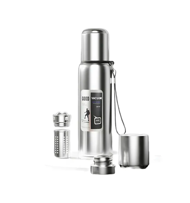 Термос Merlion з нержавіючої сталі, з ситечком, чашкою та ручкою для перенесення, об&aposєм 2000 мл., сірий