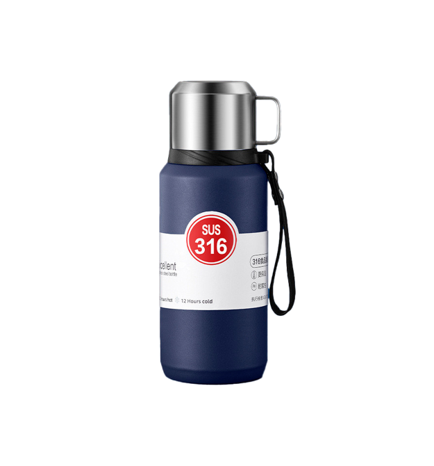 Термос Merlion з нержавіючої сталі, з чашкою та ручкою для перенесення, об&aposєм 1500 мл., синій