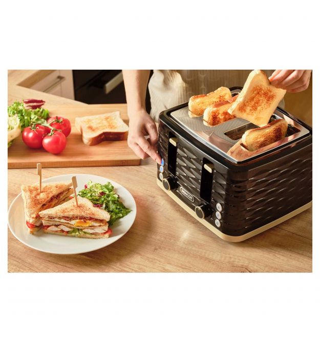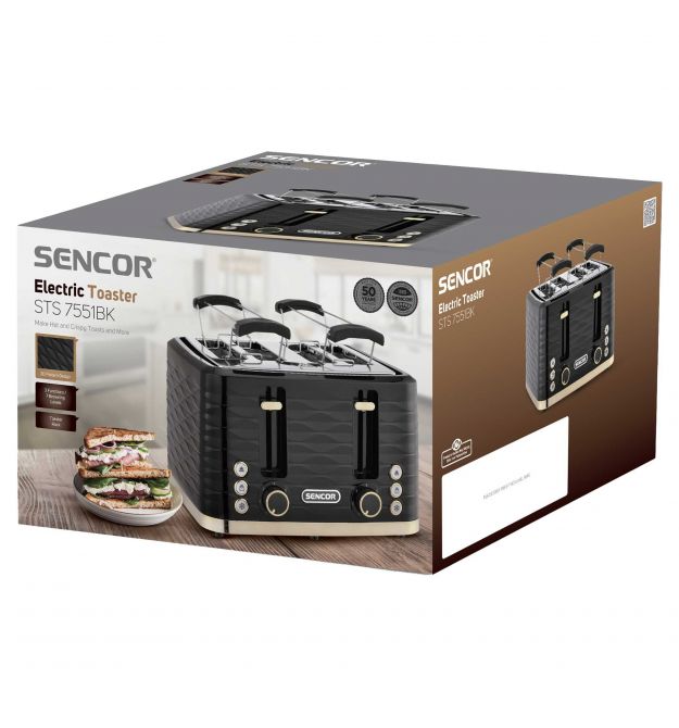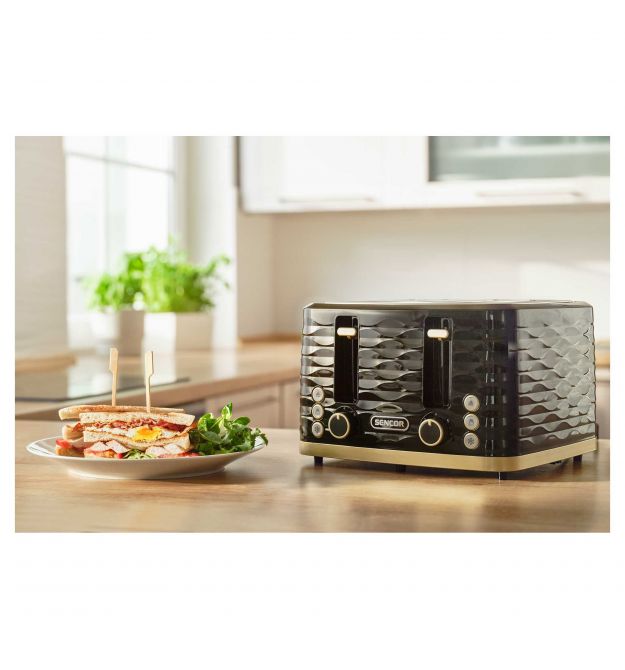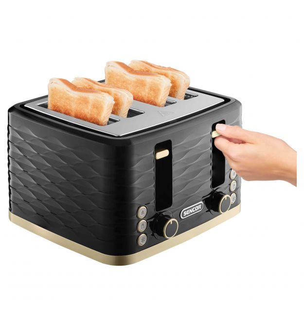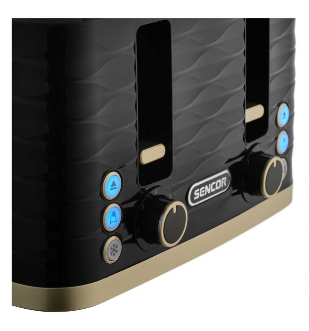 Sencor Тостер Sencor 1600Вт, підігрів, розморожування, 4 слоти, пластик, чорно-золотий