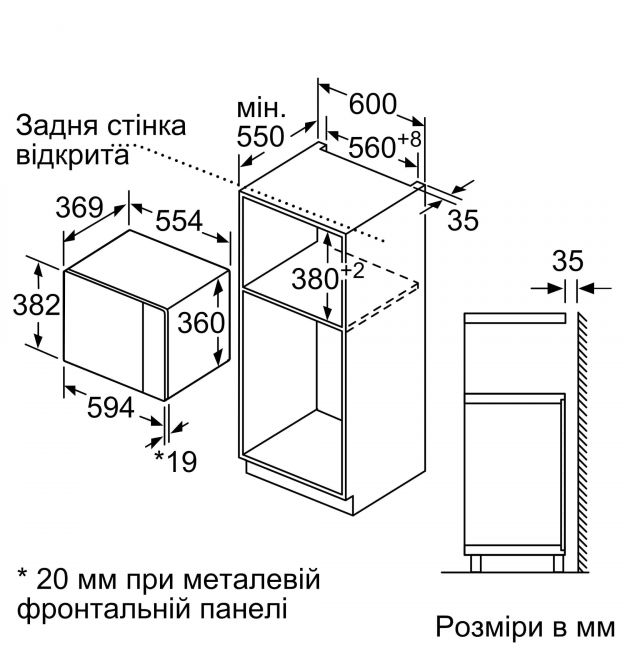 | Розміри для вбудовування (ВхШхГ) | 380-382 |