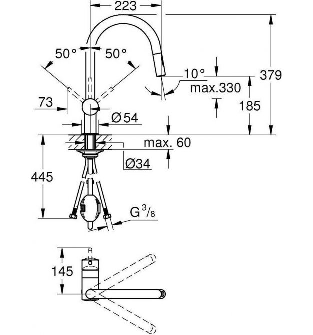 | Тип виливу | висувний вилив |