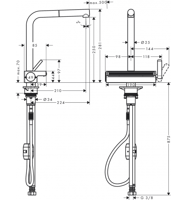 | Тип виливу | висувний вилив |