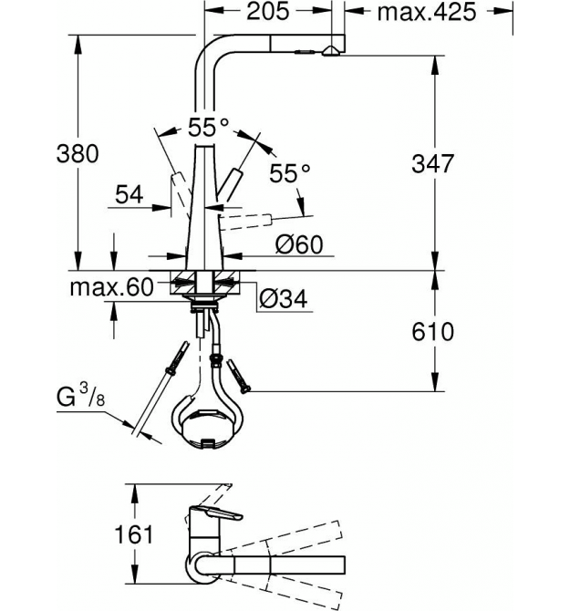 | Тип виливу | висувний вилив |