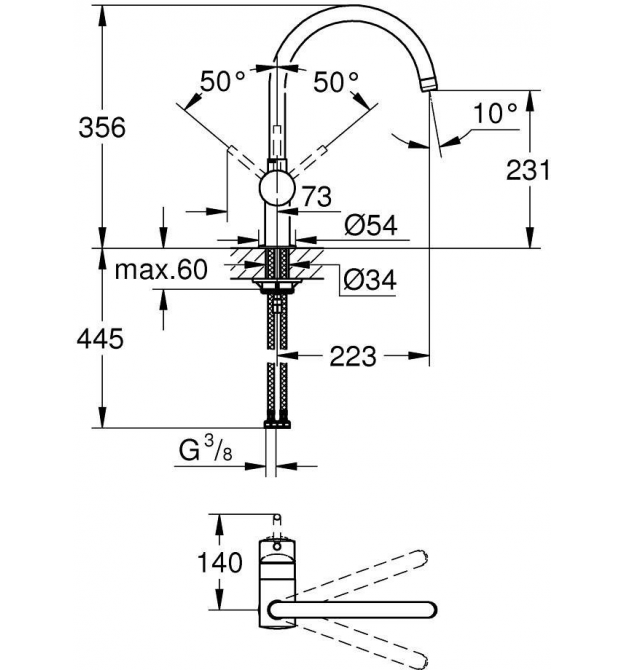 | Кут повороту виливу | 360 ° |