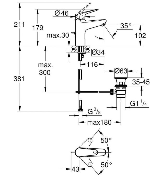 | Вид змішувача | одноважільний |