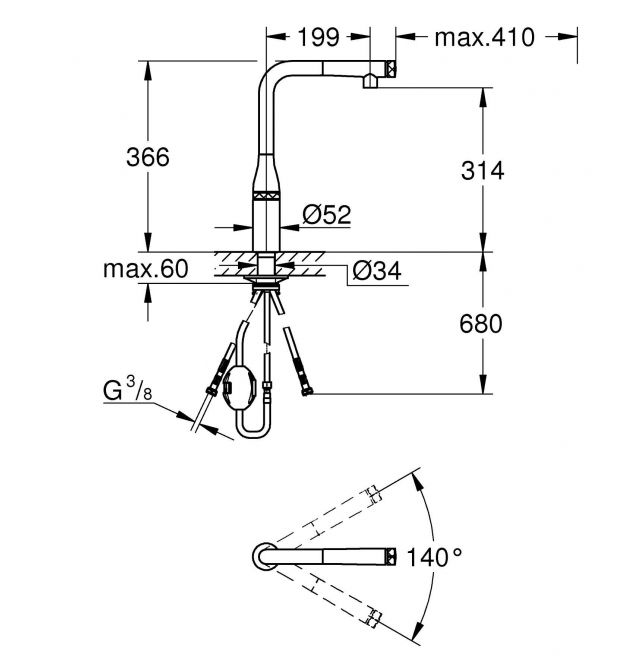 | Тип виливу | висувний вилив |