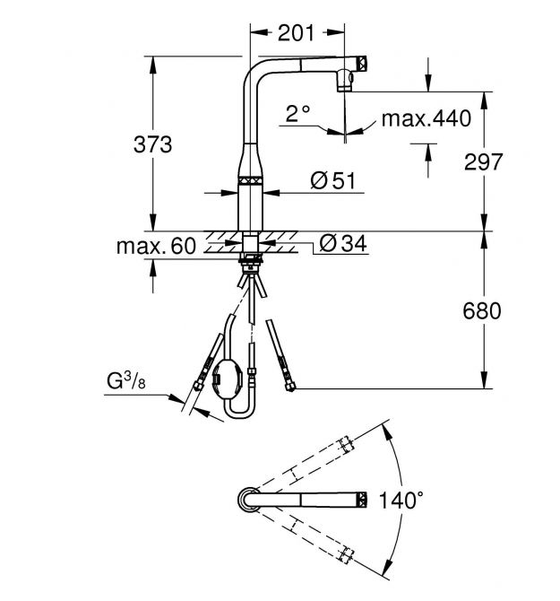| Кут повороту виливу | 140 ° |