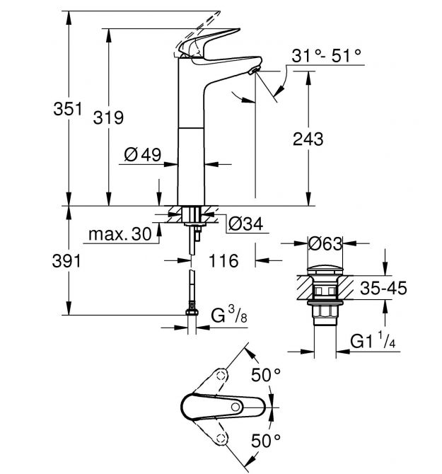 | Вид змішувача | одноважільний |